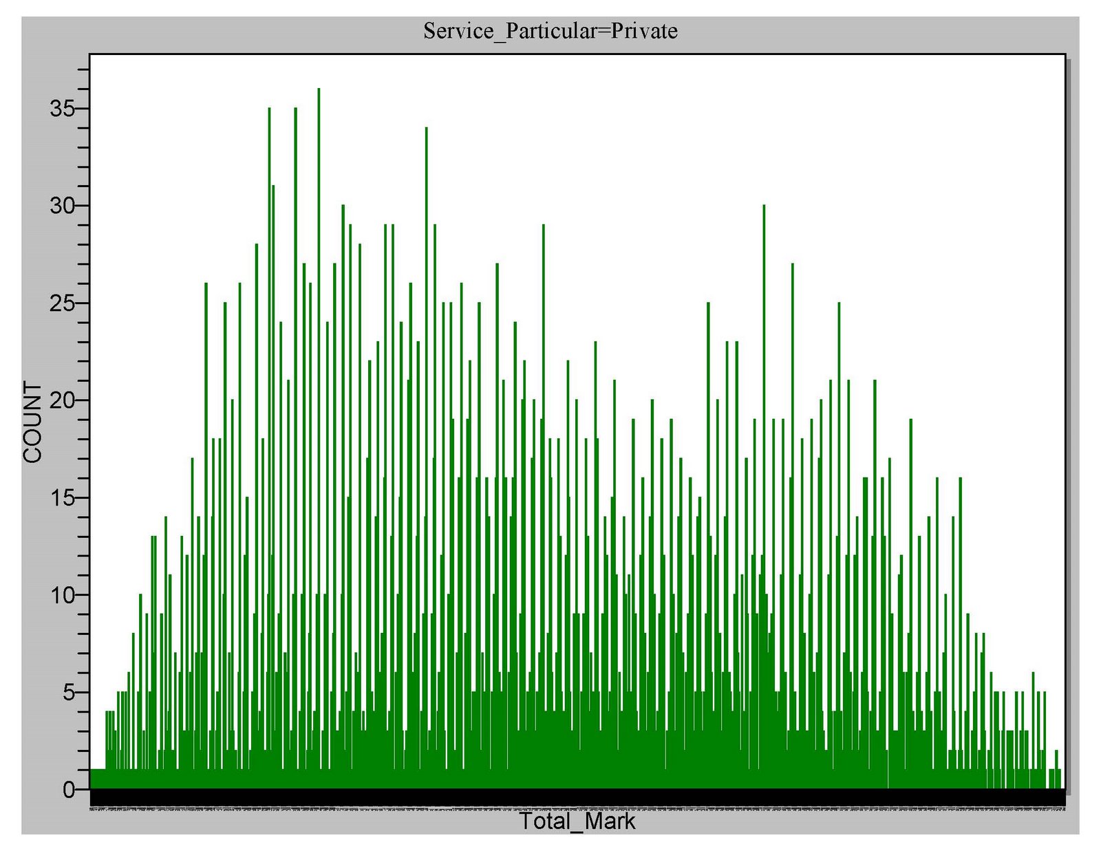 Total Mark —–Number of Candidates with the Same Mark —–Percentage of the candidates with the same mark